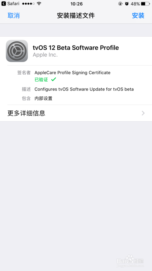 出现安装描述文件,点击右上角的“安装”,输入密码,*注意这里是输入锁屏密码哦。